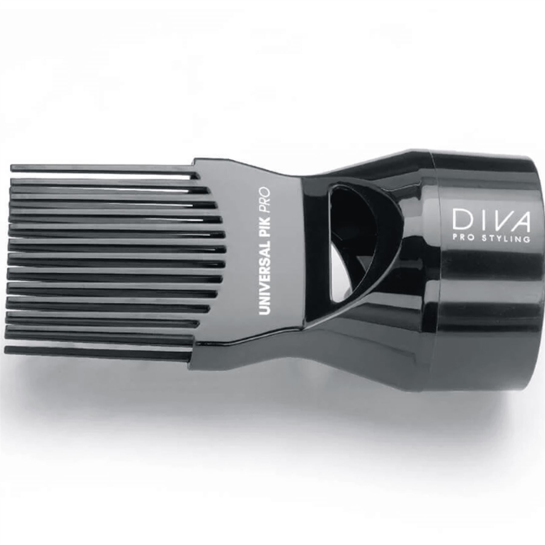 Whether your dryer barrel is long, short, thick or thin, the Universal Pik Pro should fit. Simply slide it onto the dryer and the unique soft plastic grip holds it into place. Specifically designed to fit most professional dryers, the Universal Pik has ultra-long teeth and will help to straighten and dry hair to achieve all over full-bodied volume, and allow for faster and deeper drying. It is ideal for Afro Caribbean hair types.