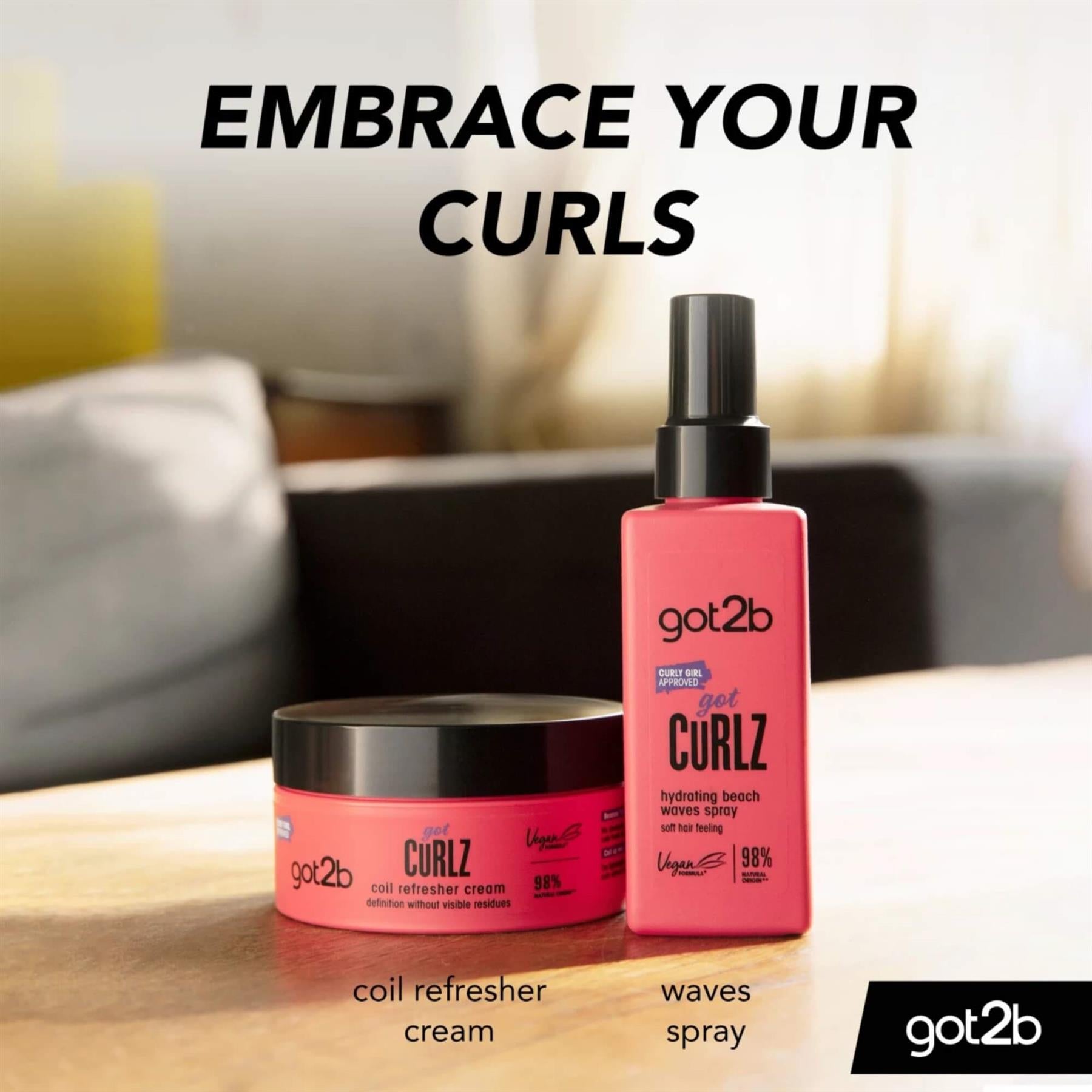 got2b gotcurlz Hydrating Beach Waves Spray creates sea-swept beach waves without that dry hair feeling. Infused with coconut water and ocean minerals it leaves hair soft with a natural tousled look and defined waves. Don't tame curls, embrace them!