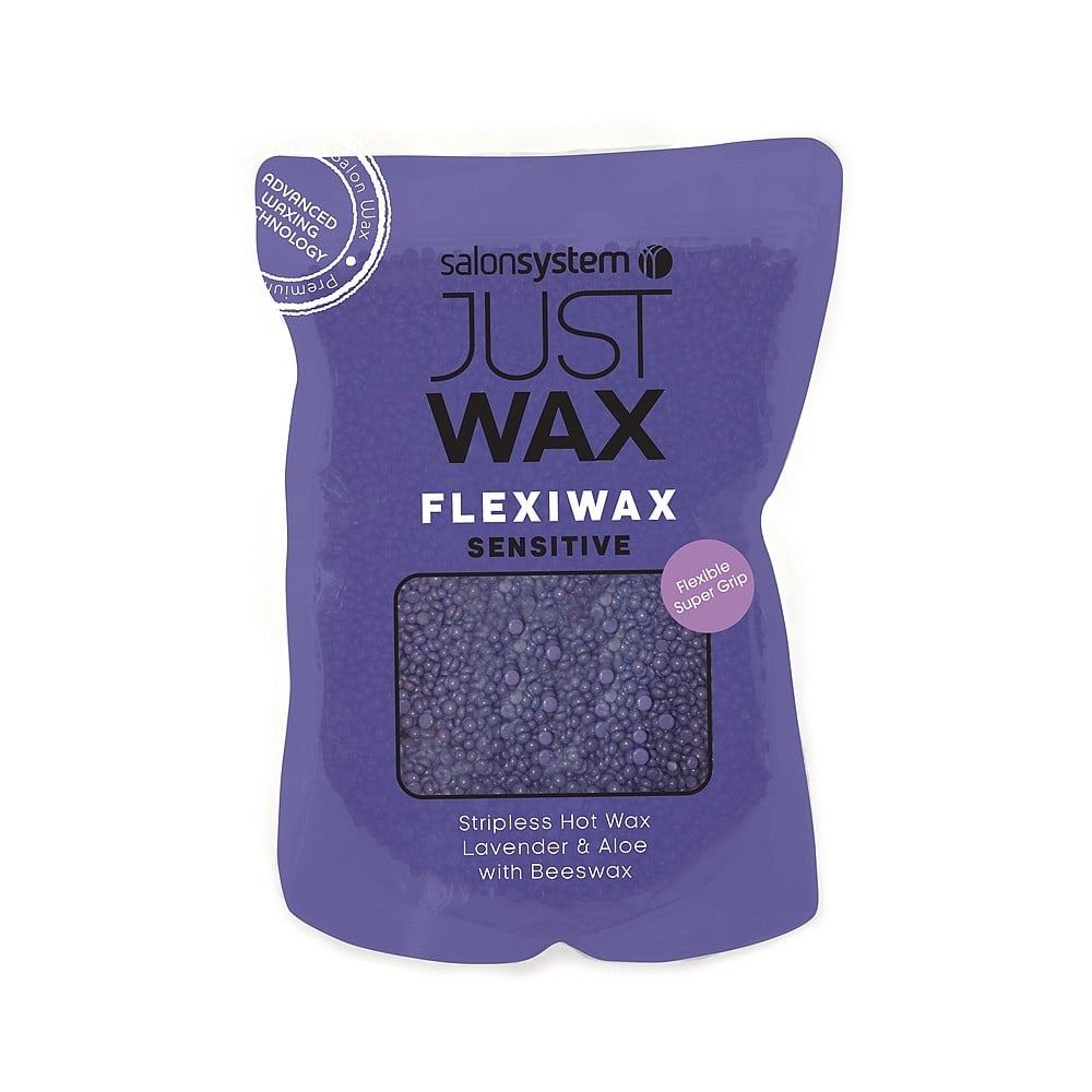 Perfect for delicate skin, Salon System Just Wax Sensitive Flexiwax Beads remains pliable while keeping a firm hold over even the shortest of hairs. The flexible, supergrip stripless hot wax beads is formulated with resins, beeswax, lavender and aloe vera. Ideal for underarm, face, brows and bikini.