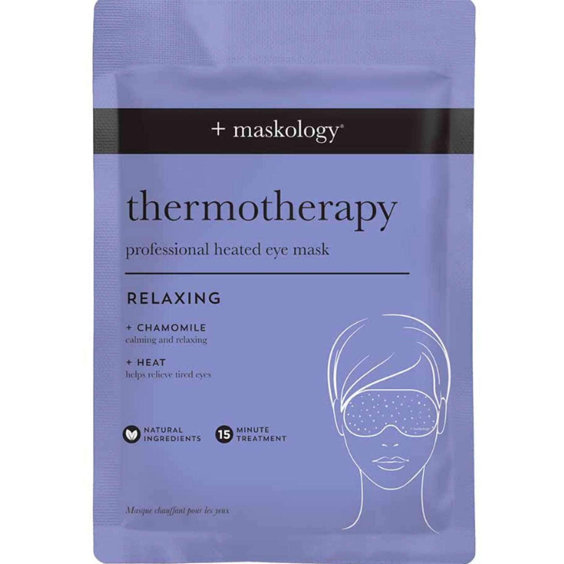 Experience a moment of calm with +maskology THERMOTHERAPY Professional Heated Mask. This relaxing treatment soothes eyes by gently heating the area, allowing you to sit back and reset. Scented with calming chamomile, these masks will help yoU sink into a peaceful rest and take time to relax. These 15 minute masks are a great choice for when your eyes feel tired, strained or if you have spent too much time on a screen. The gentle warmth and rest that this treatment provides will leave you feeling replenished.