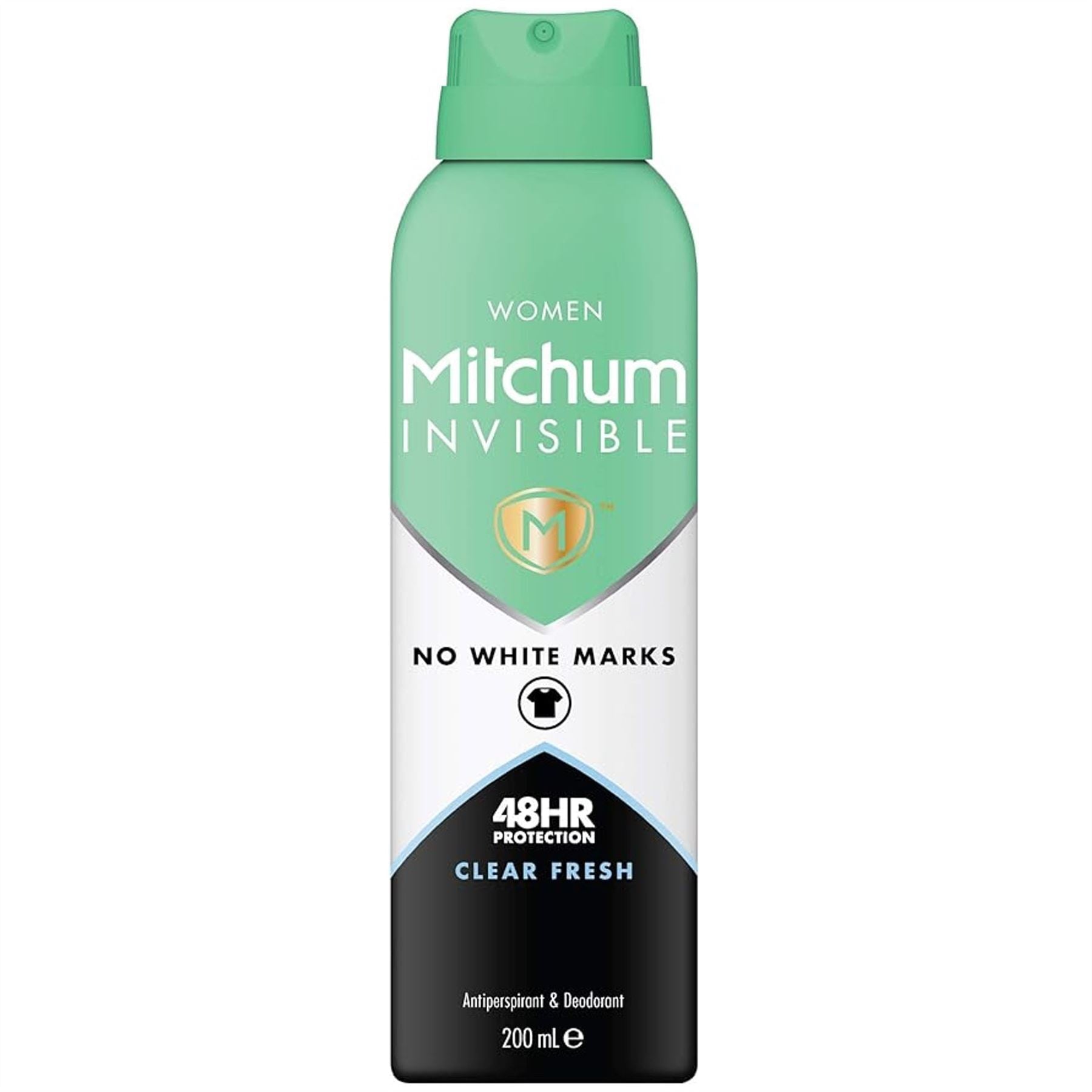 Mitchum Invisible Women 48 hrs Protection Clear Fresh Anti-Perspirant and Deodorant 200 ml, no White marks, just pure protection. Frustrated when you have white marks left on clothes? Equally frustrated when your invisible deodorant stops providing the sweat and odour protection you want? New Mitchum invisible offers the balance between protection and no white marks.